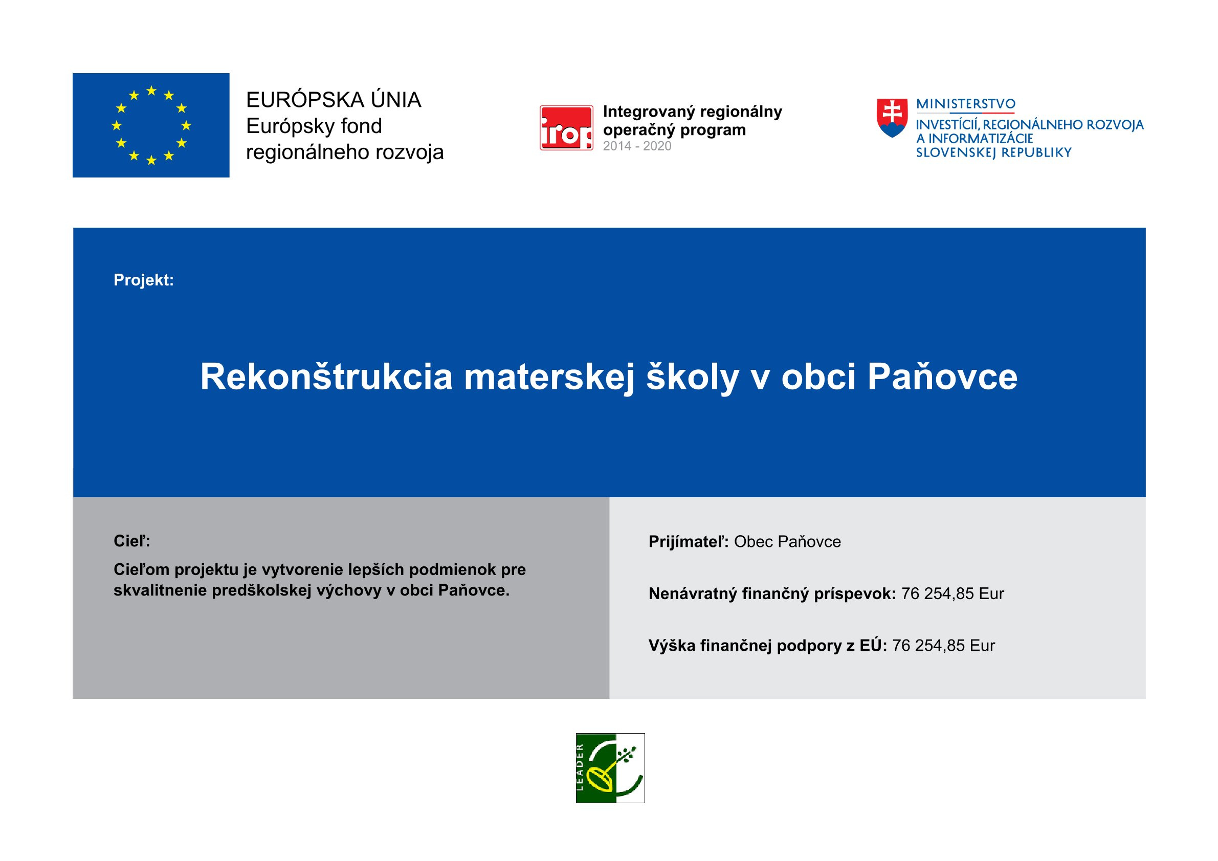• Rekonštrukcia Materskej školy v obci Paňovce